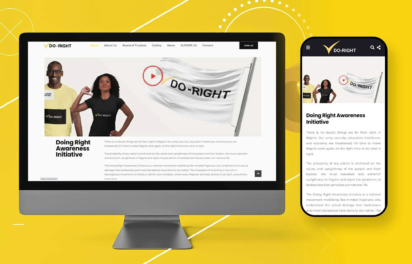The strong blue and orange palette communicates trust, energy, and confidence.